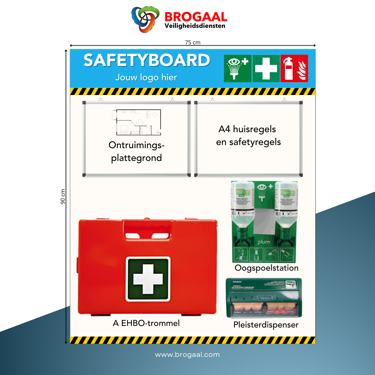 Het Safetyboard 1 is een onmisbare en overzichtelijke verzamelplek van uw veiligheidsmiddelen in uw bedrijf.