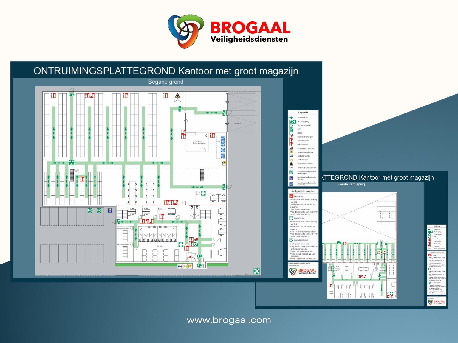 Ontwikkeld volgens NEN 1414 en NEN-EN-ISO 7010 en geprint op stevig, brandvertragend zeildoek (want ook een plattegrond moet tegen een beetje vuur kunnen!)